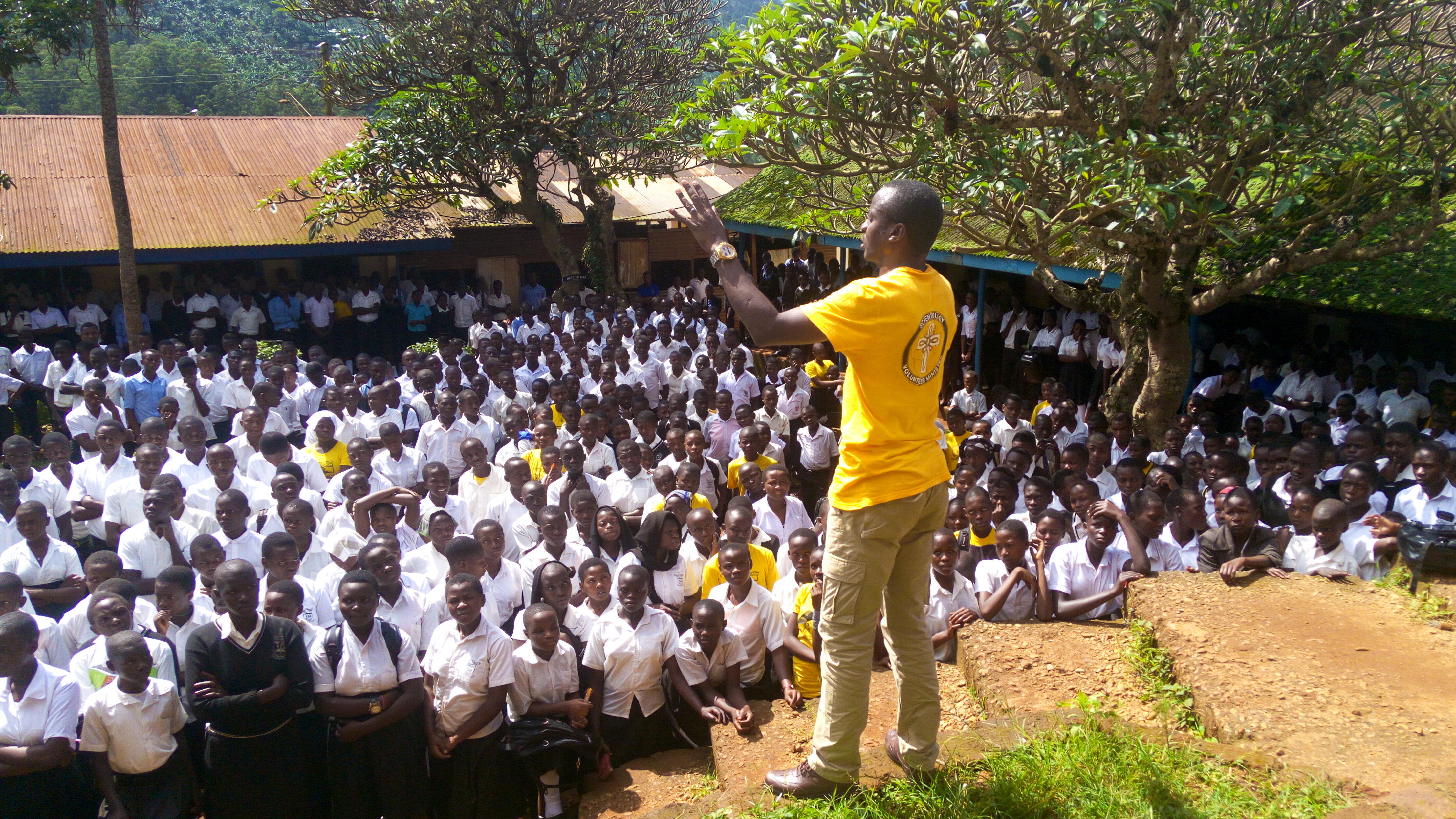 Taleren fra Bududas byråd, der henvendte sig til den forsamlede menneskemængde, før snoren blev klippet over til det nye center, sagde: ”Jeg lyttede meget omhyggeligt til Daniel, og jeg var meget glad for alt, hvad han forklarede om Scientology! Jeg havde lyst til at springe op fra min stol for at give Daniel et stort knus for at bringe Scientology Frivillig Hjælper-ressourcecenteret til Kuushu, Bududa!”